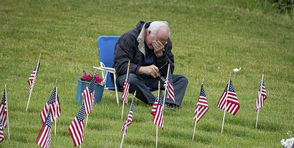 Willamette National Cemetery : Kiewit Newsroom - A final place for veterans to rest - A visitor is shown here grieving during a visit to the cemetery on memorial day 2019.